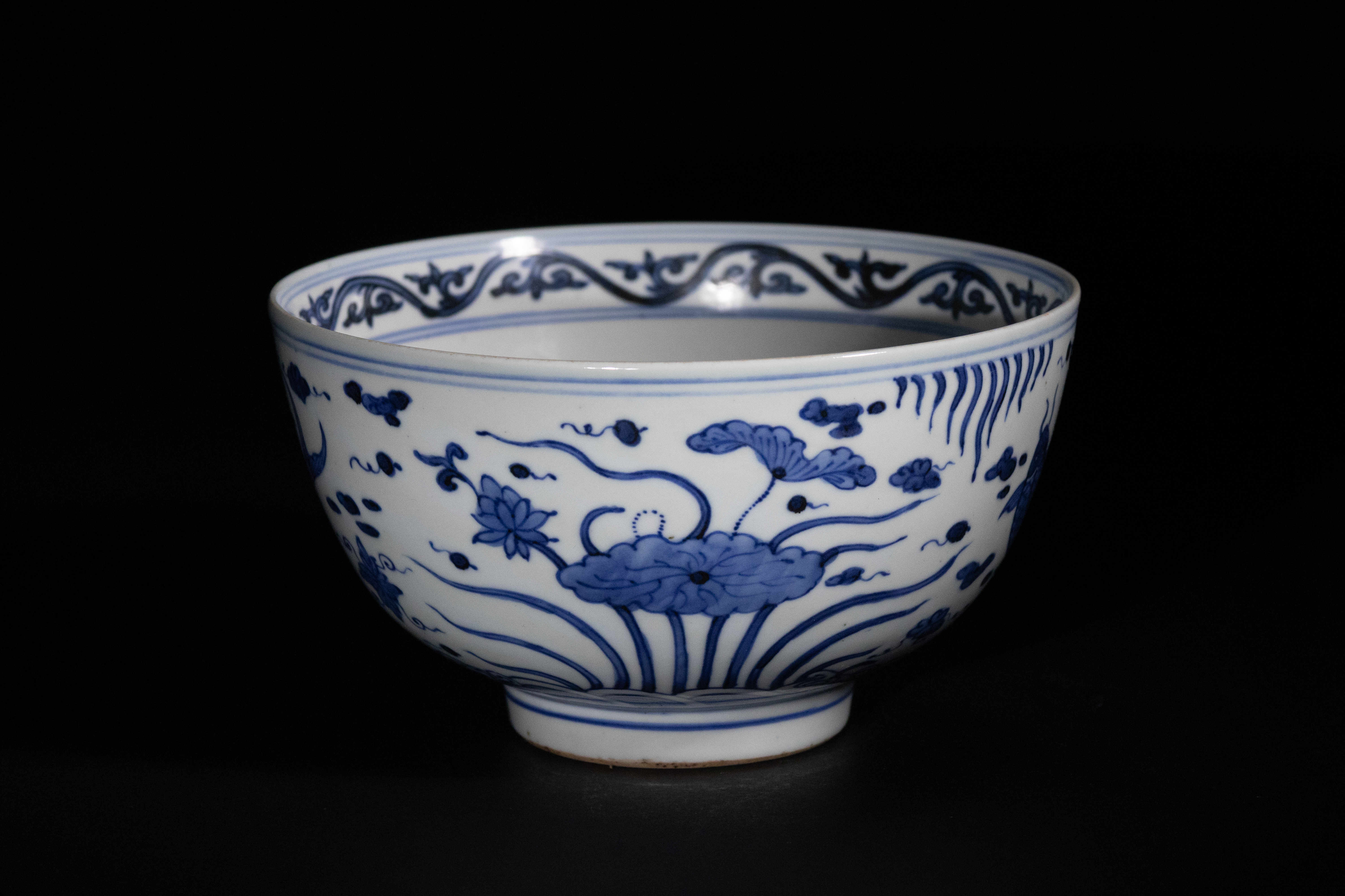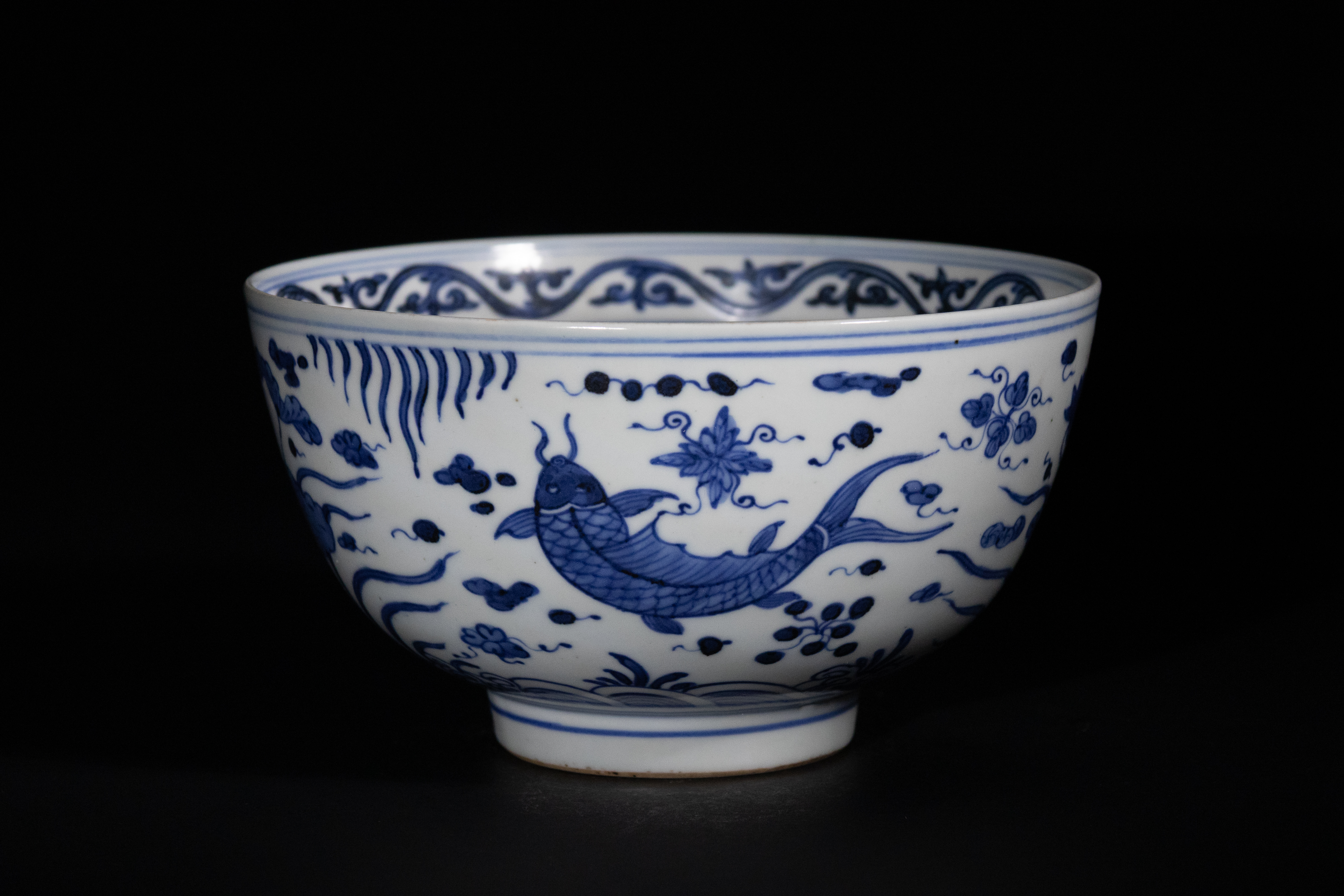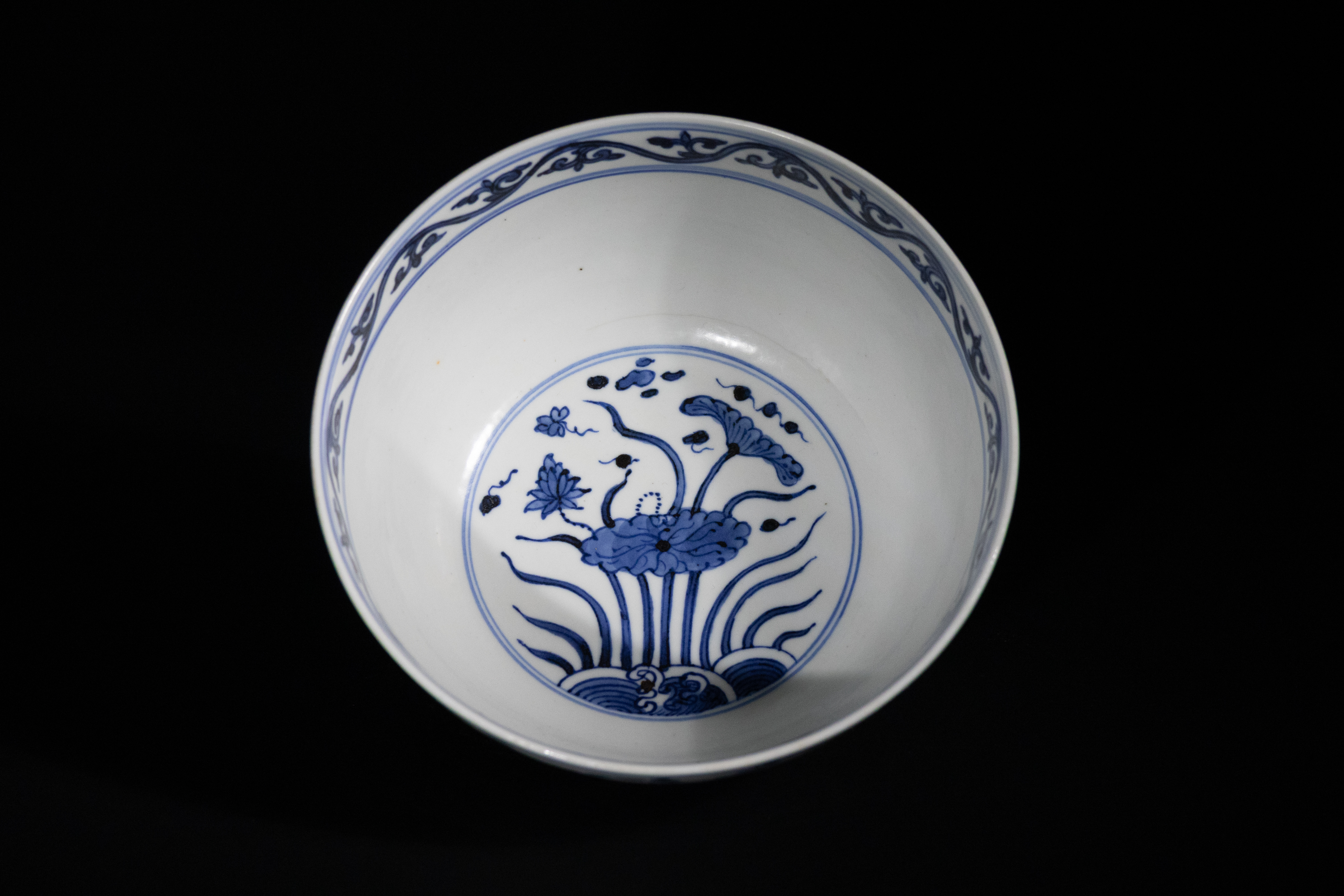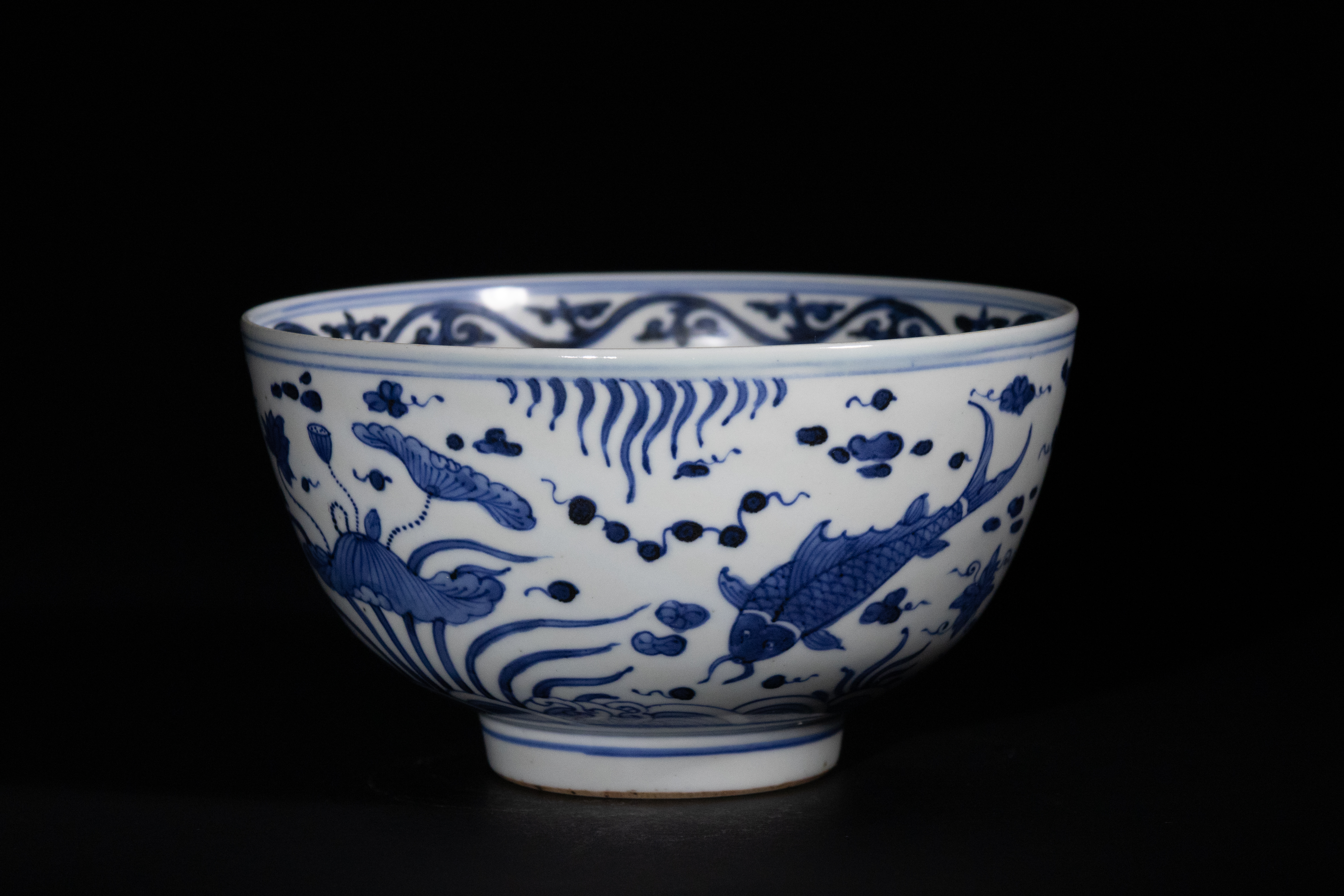 Lot 11: A Chinese Blue and White 'Fish and Aquatic Plant' Porcelain Bowl, Xuande Mark