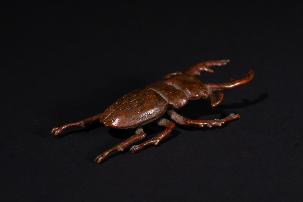 Lot 112: A Japanese Bronze Stag Beetle Okimono