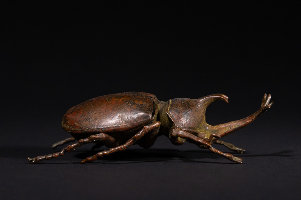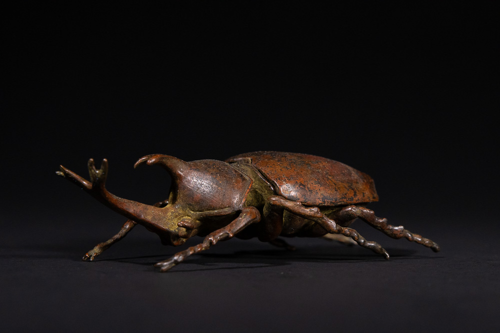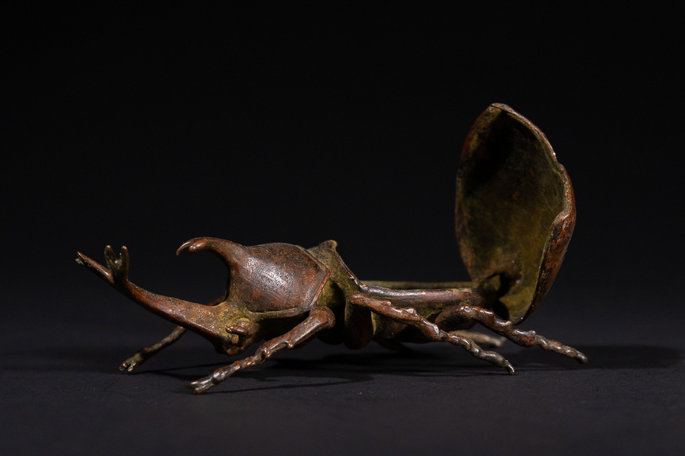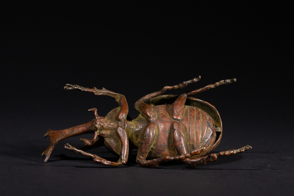 Lot 113: A Japanese Bronze Rhinoceros Beetle Okimono with Articulated Carapace