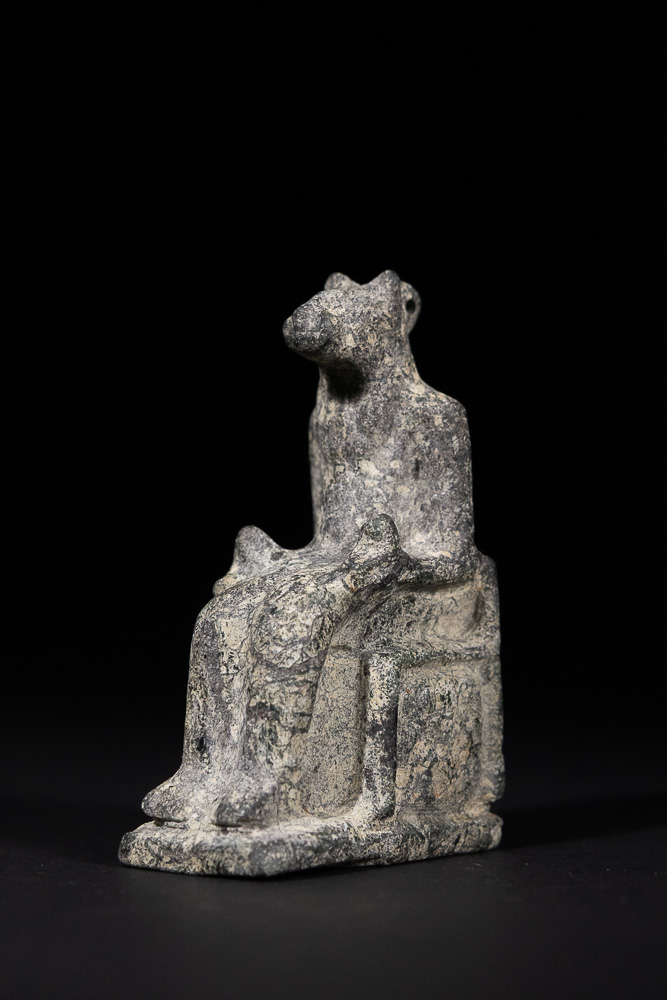 Lot 118: An Egyptian Stone Figurine of a Seated Animal-Headed Deity, Late Period of Egypt or Later.