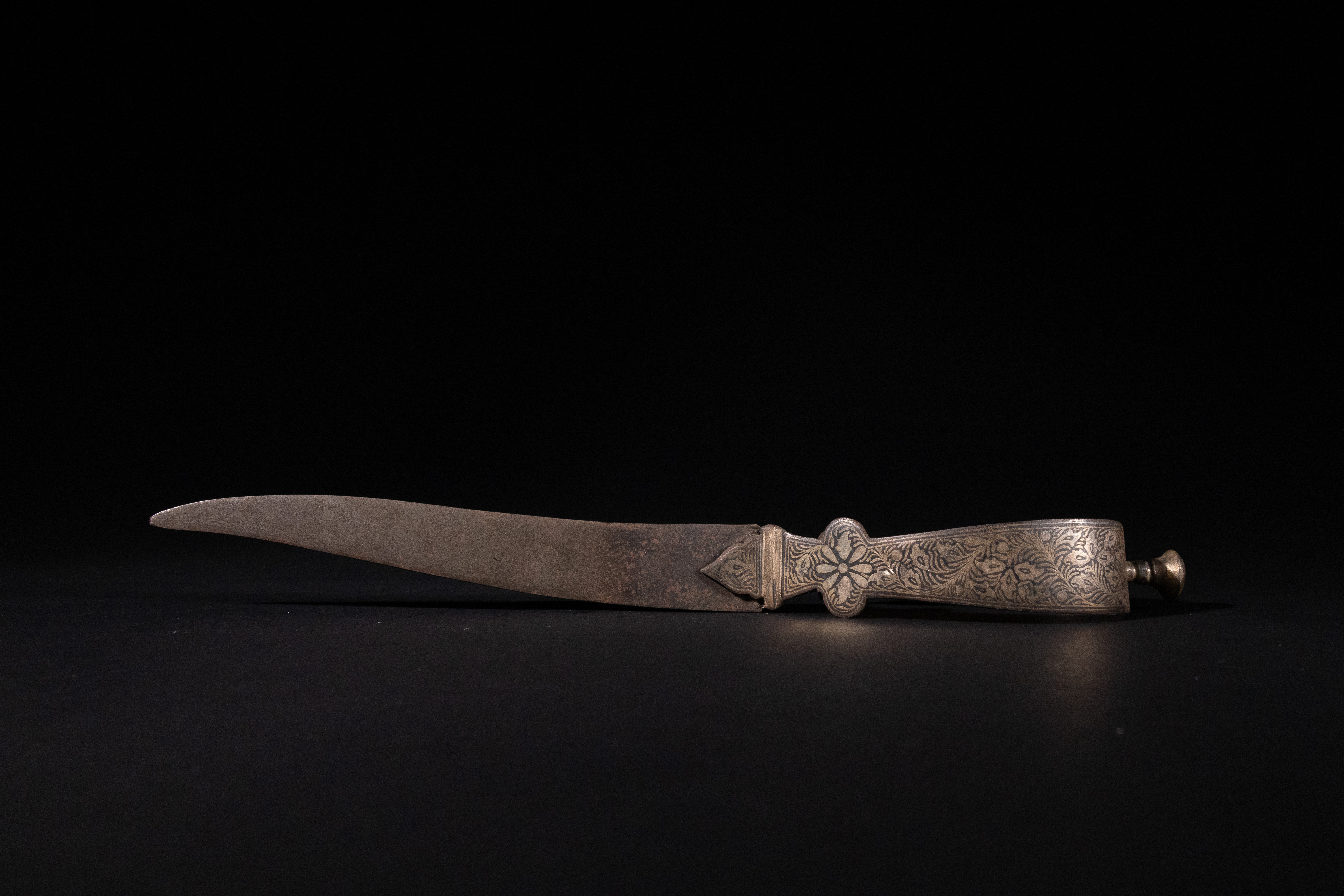 Lot 172: An Indo-Persian Silver Niello-Decorated Dagger, 19th Century