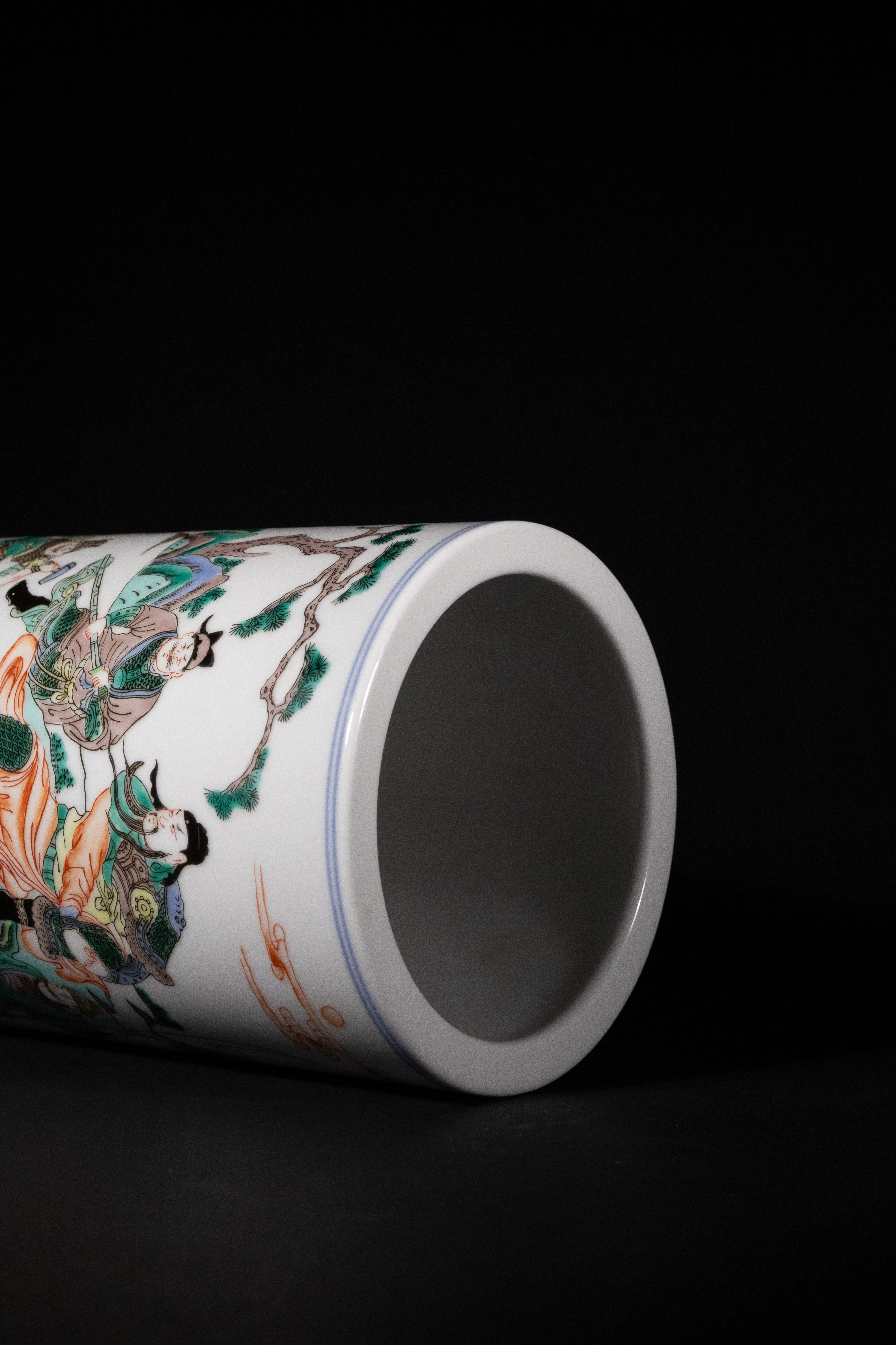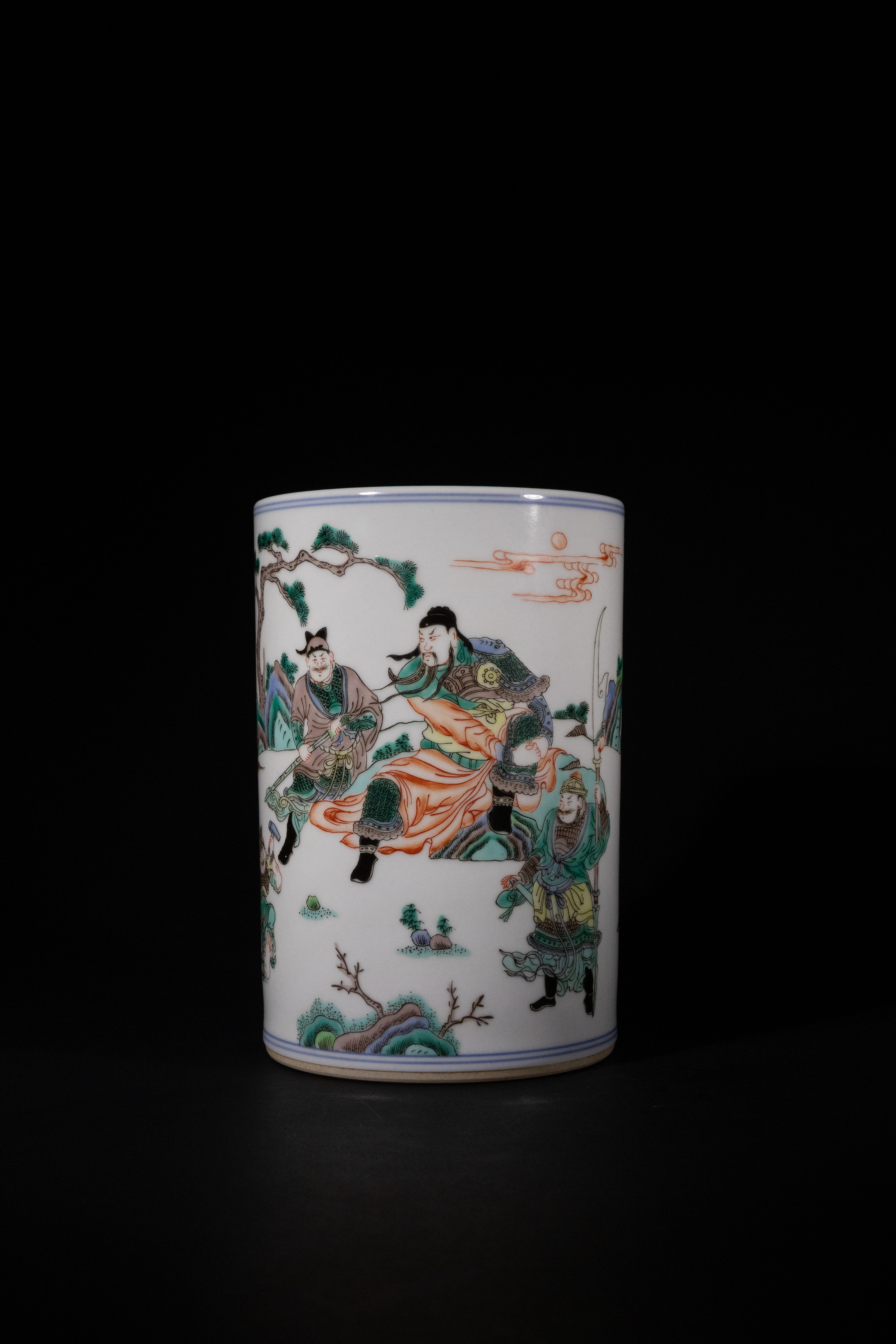 Lot 179: A Chinese Famille Verte 'Figure Story' Brush Pot, Kangxi Mark