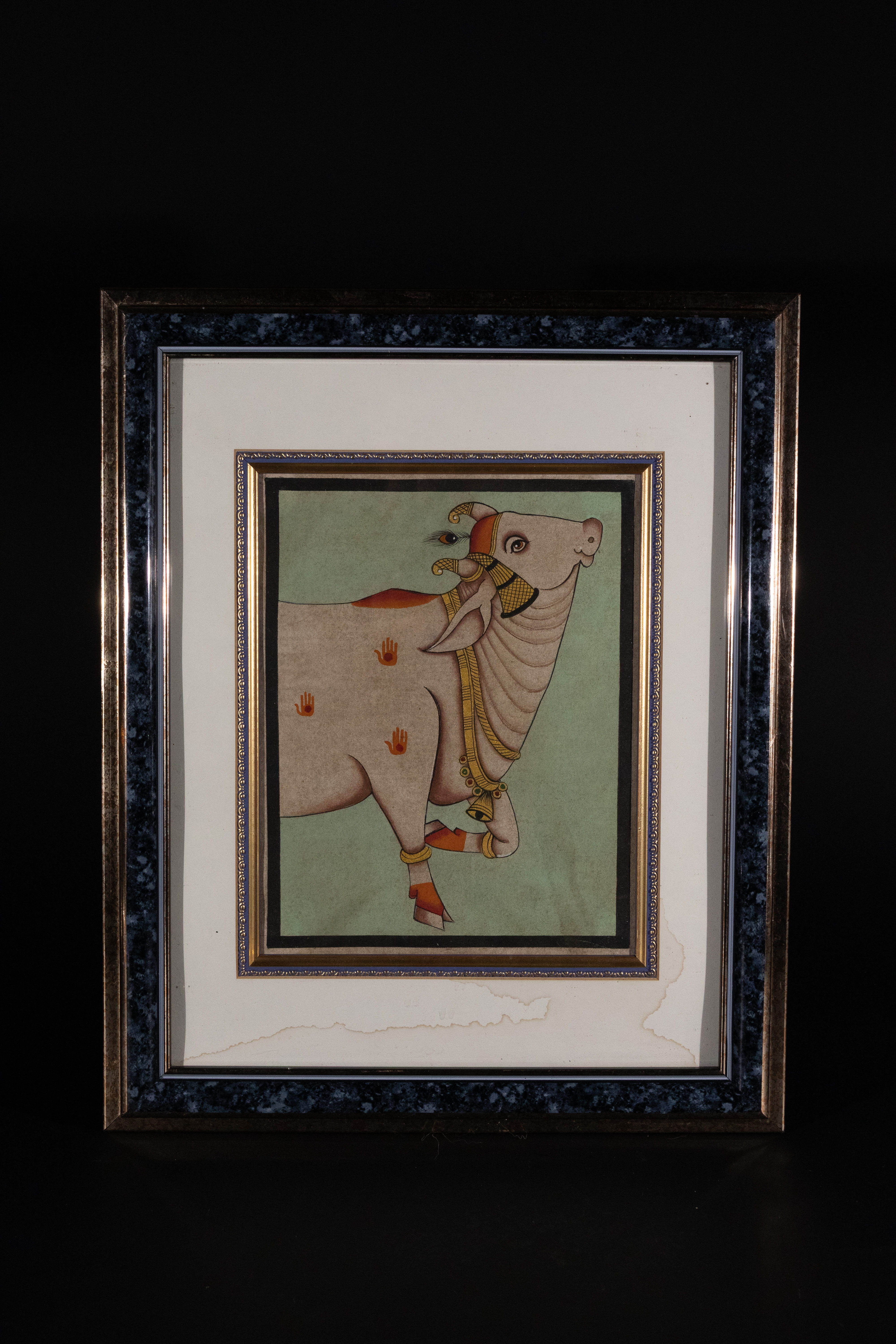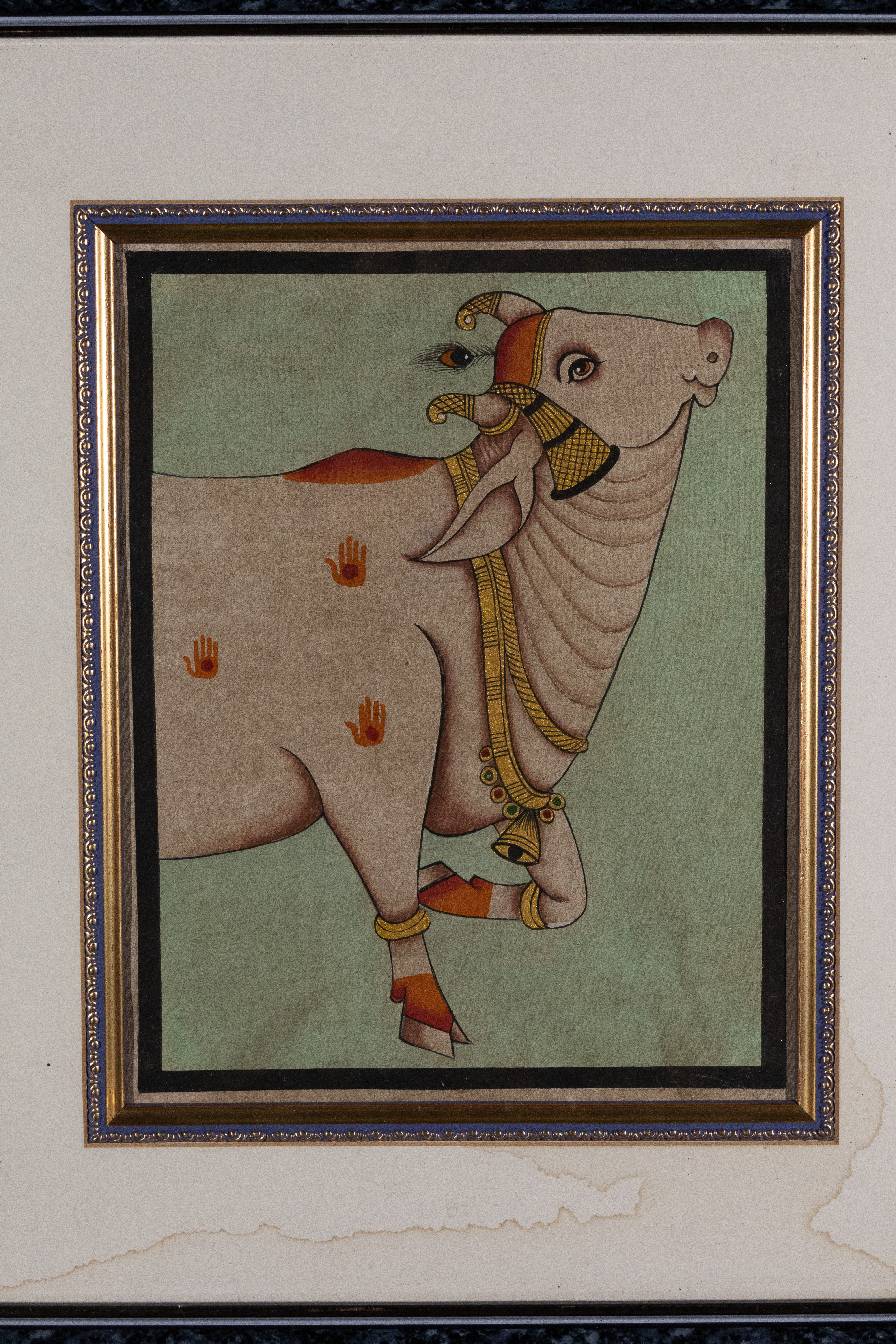 Lot 202: A Framed Indian Pichwai Painting of a Cow, 20th Century