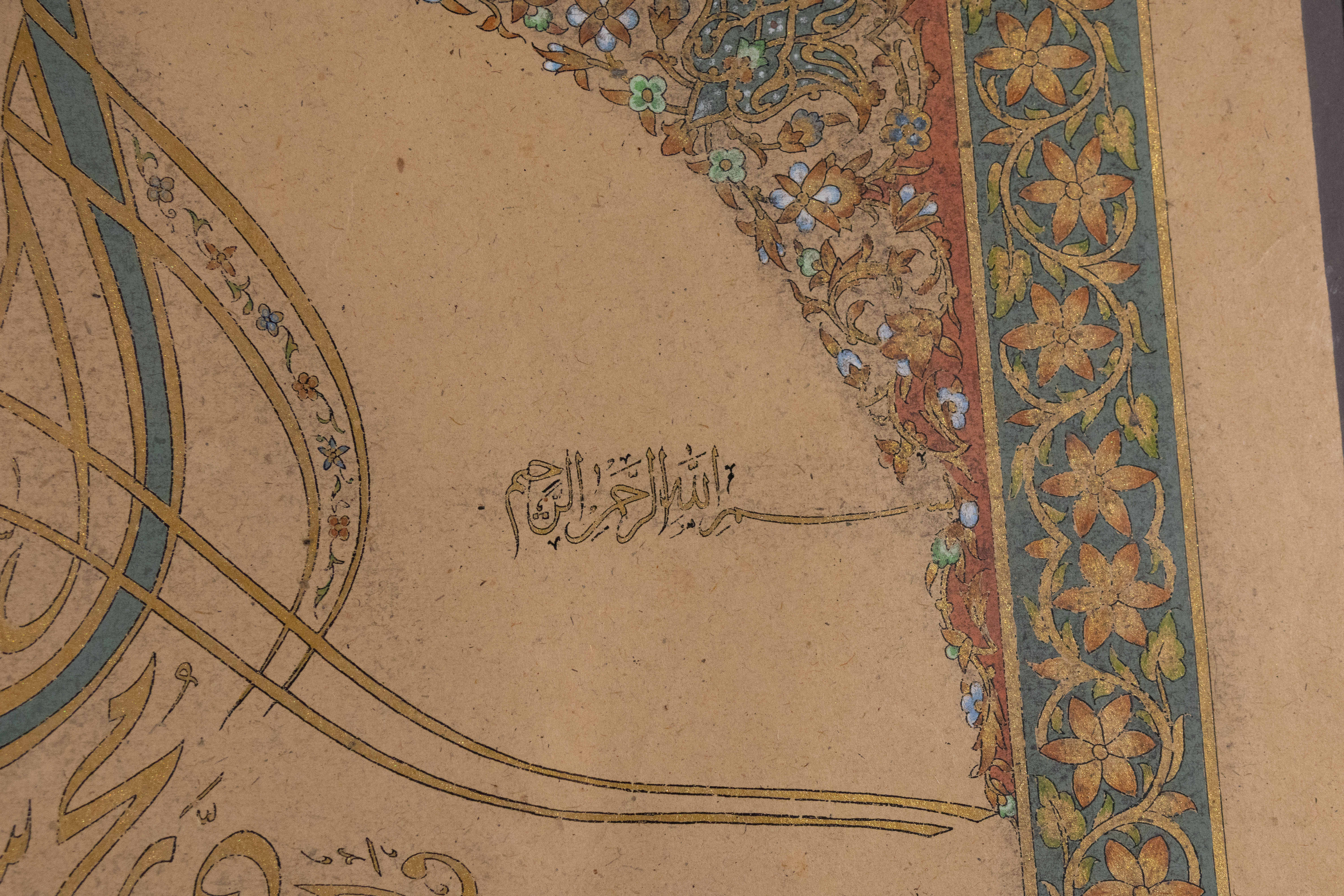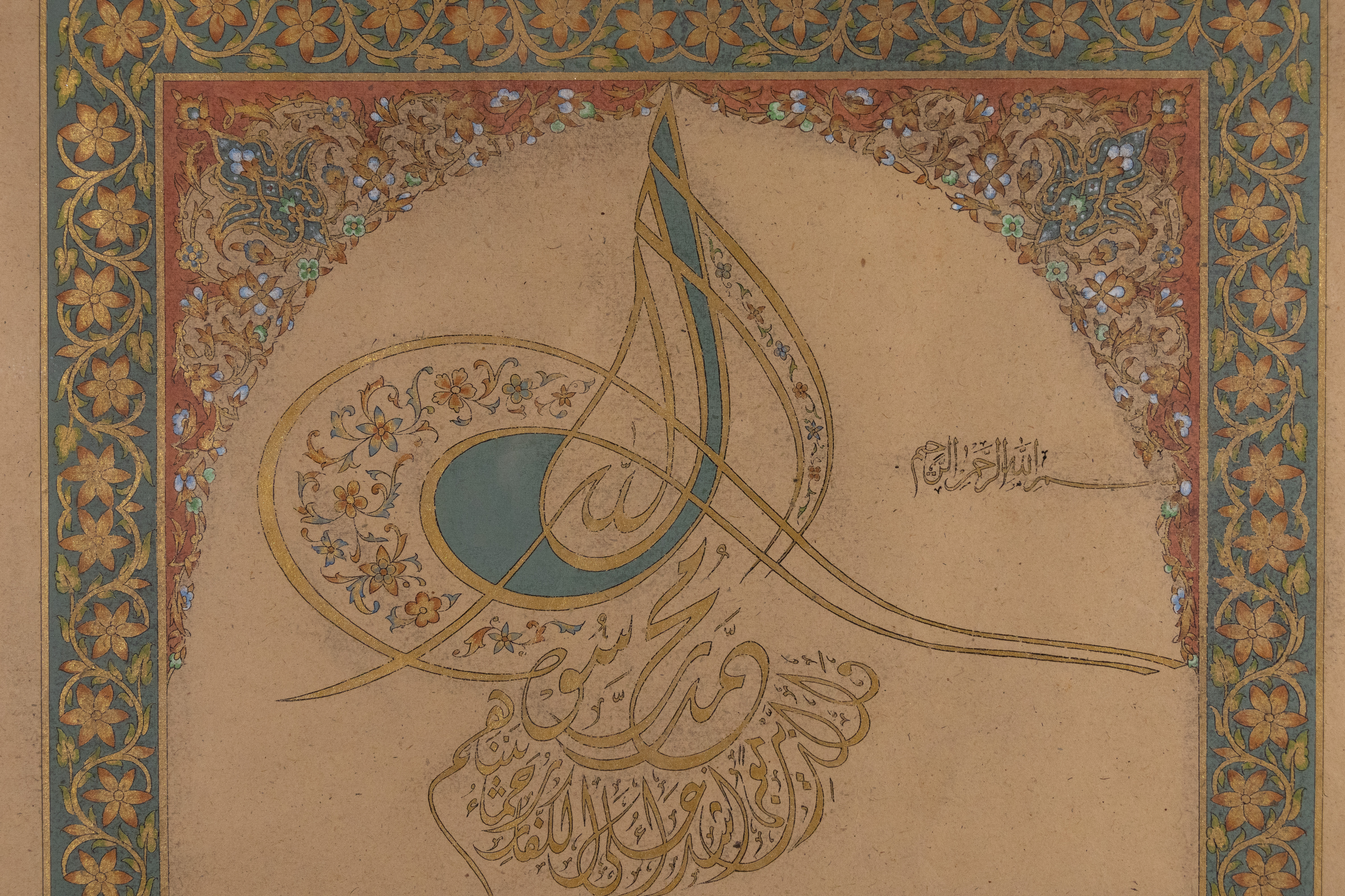 Lot 204: An Ottoman Illuminated Calligraphic Composition Depicting the Tughra of Sultan Süleiman the Magnificent, , Early 20th Century