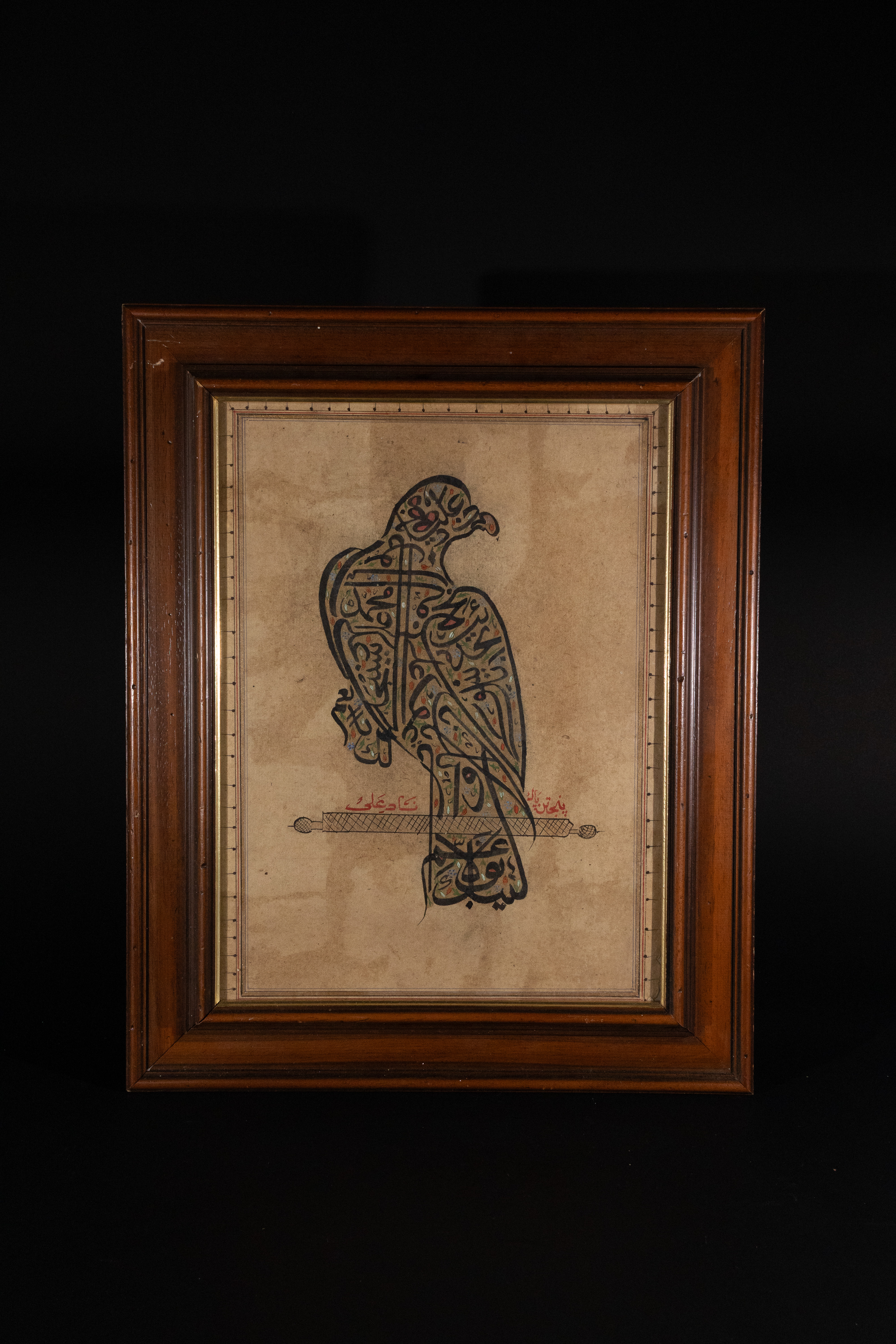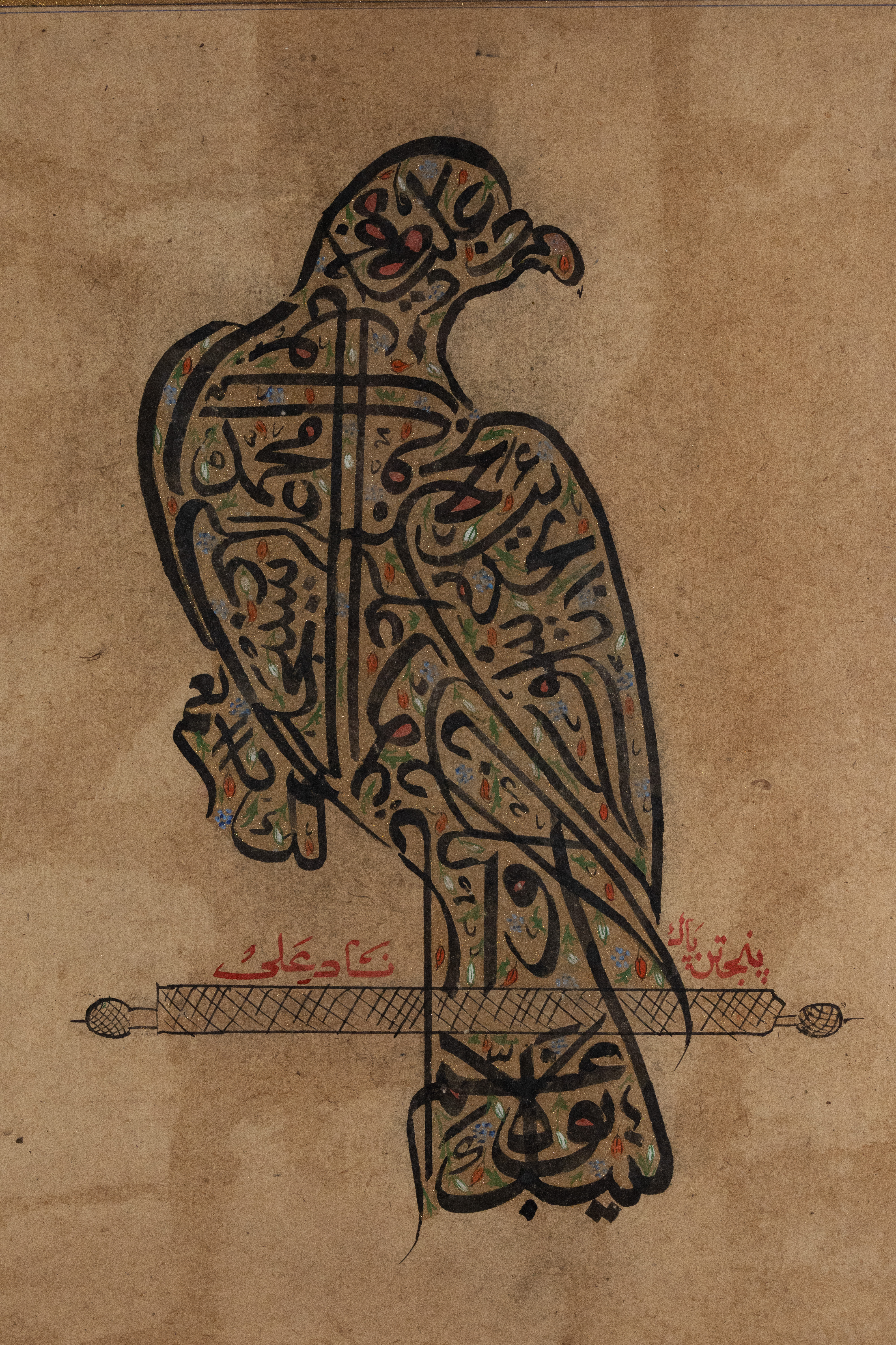 Lot 205: A Persian Calligraphic Falcon, Depicting the Nada 'Ali Quatrain, 19th Century