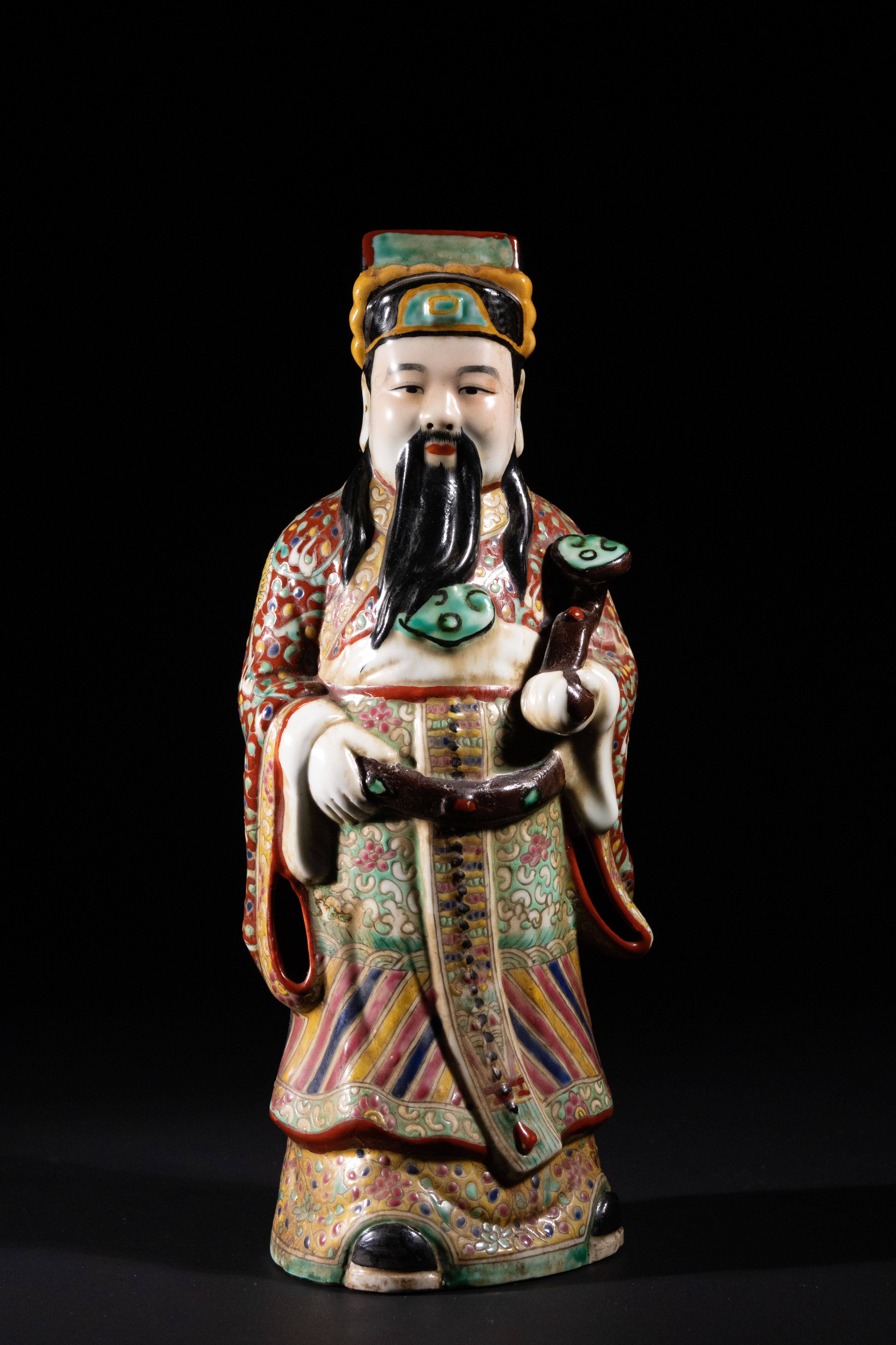 Lot 31: A Chinese Famille Rose Porcelain Figure of Lu Xing, Early 20th Century