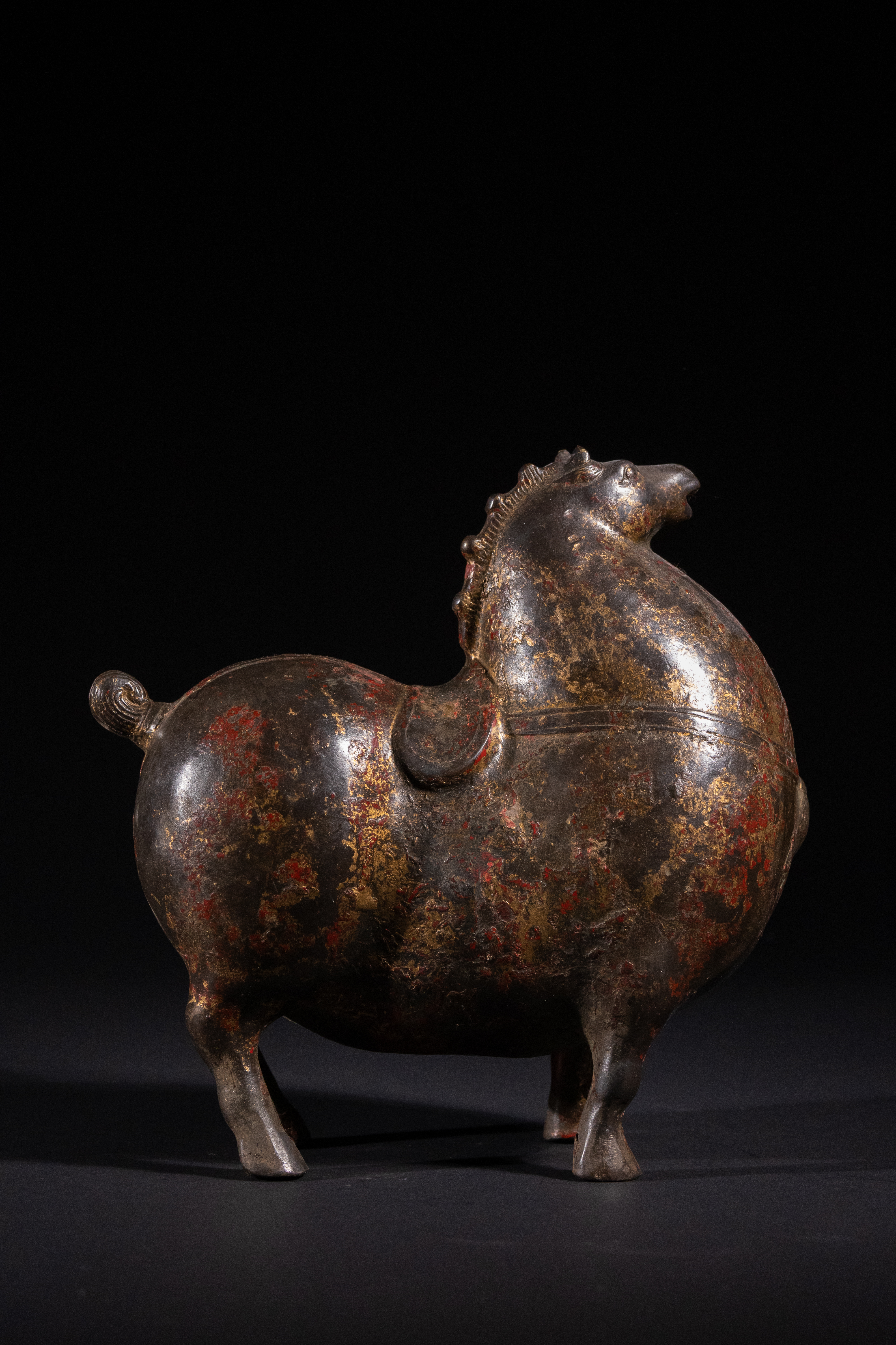 Lot 38: A Chinese Gilt Bronze Horse Figure, Possibly Tang Dynasty