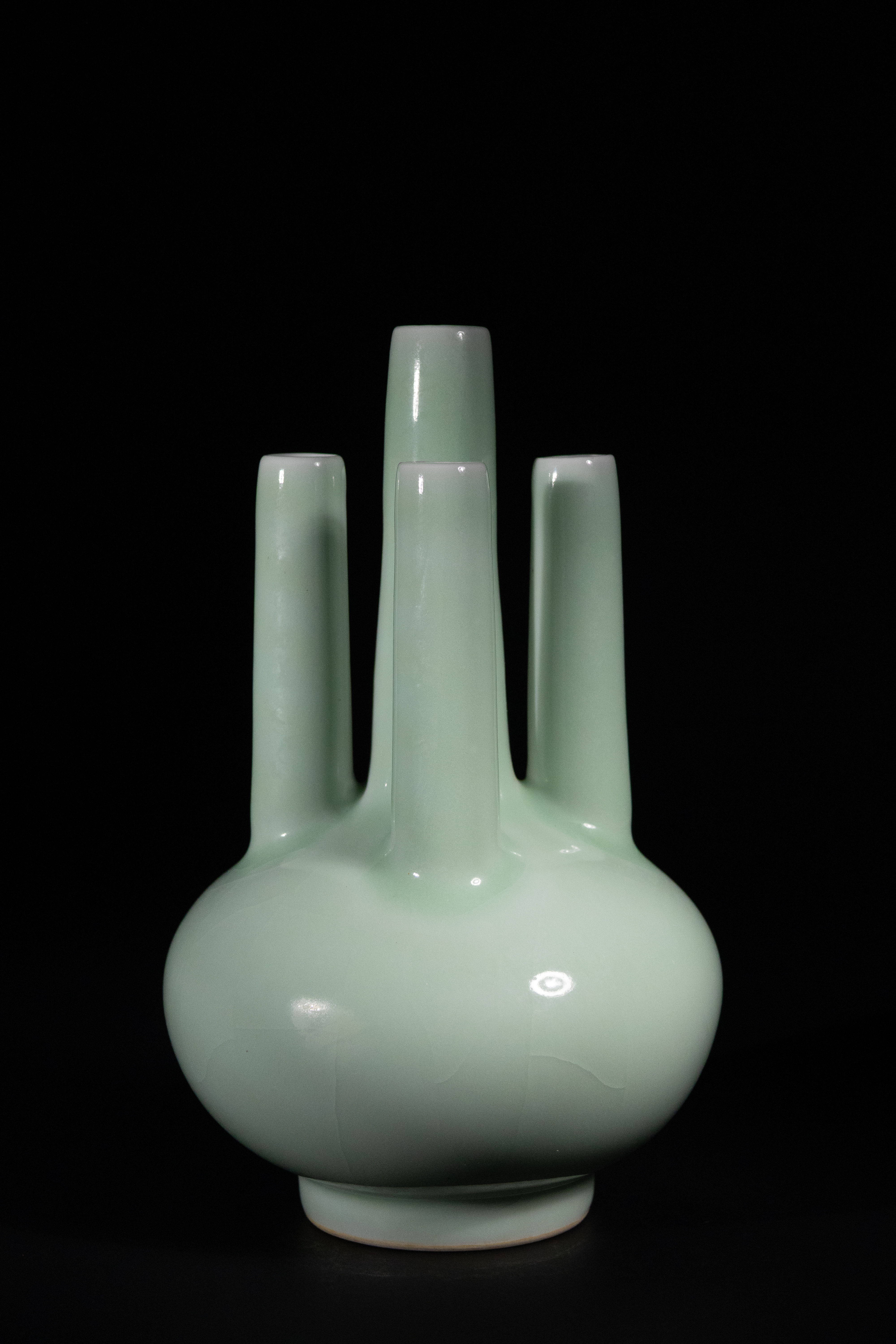 Lot 5: A Chinese Celadon-Glazed Conjoined Five-Neck Vase, Qianglong Mark