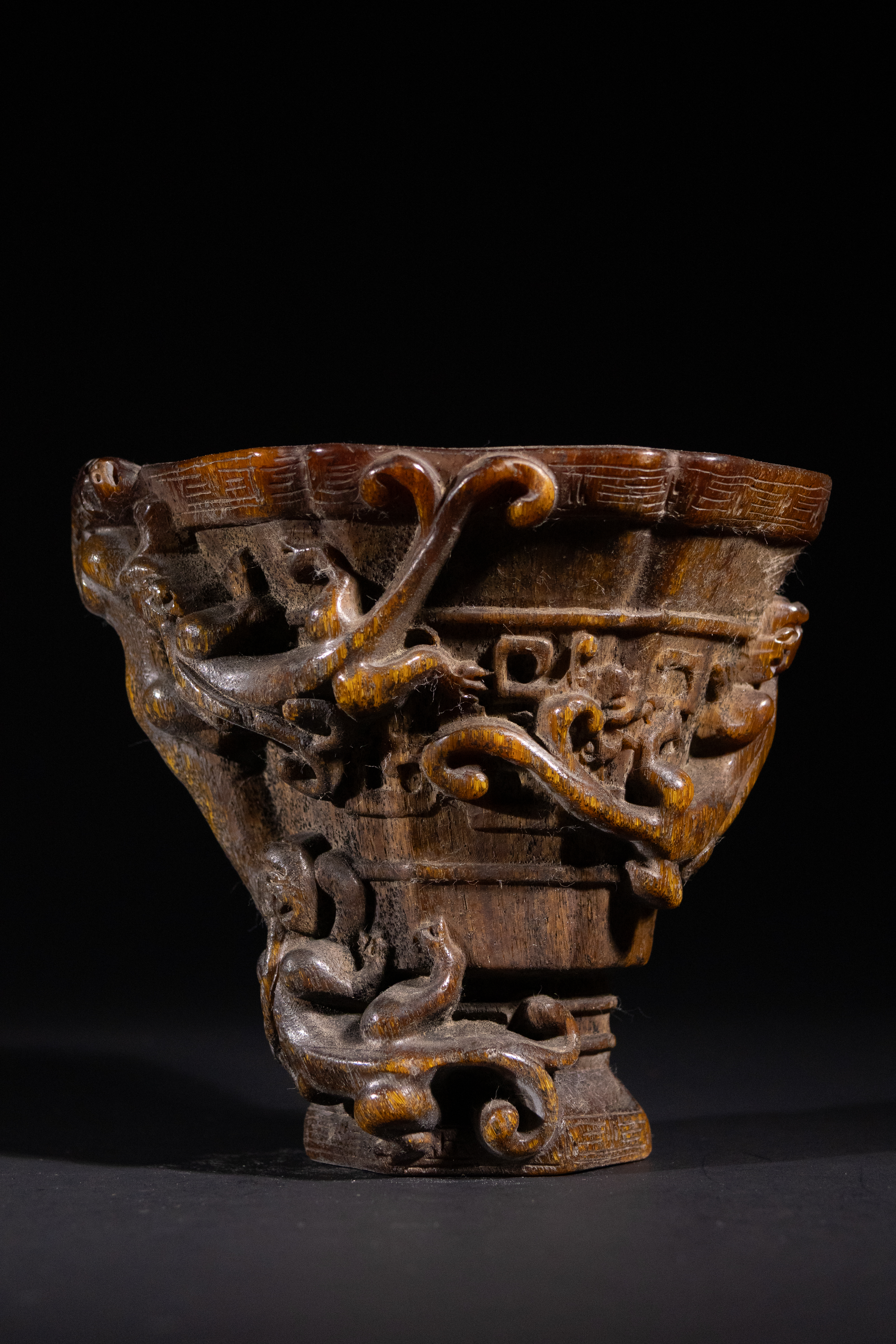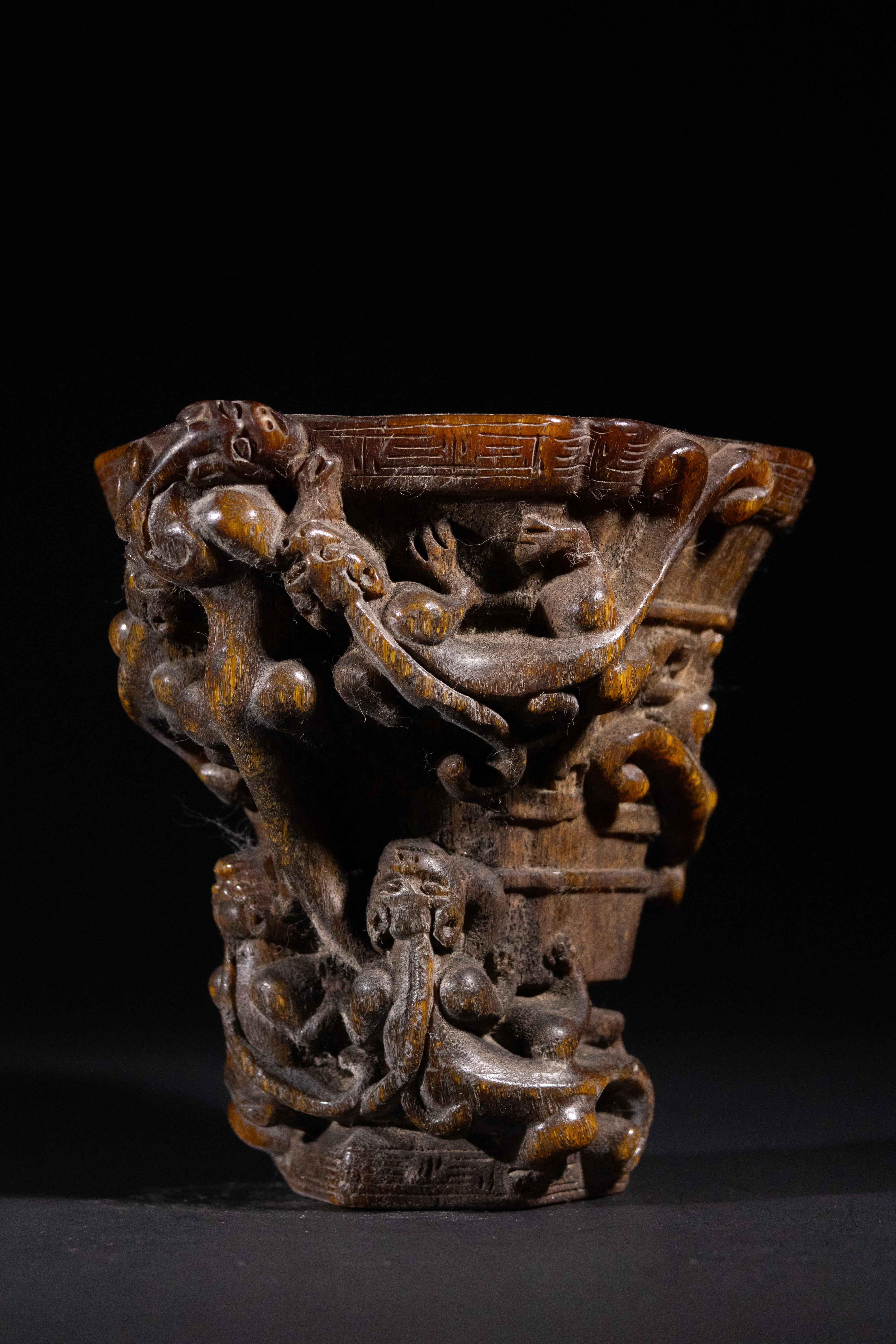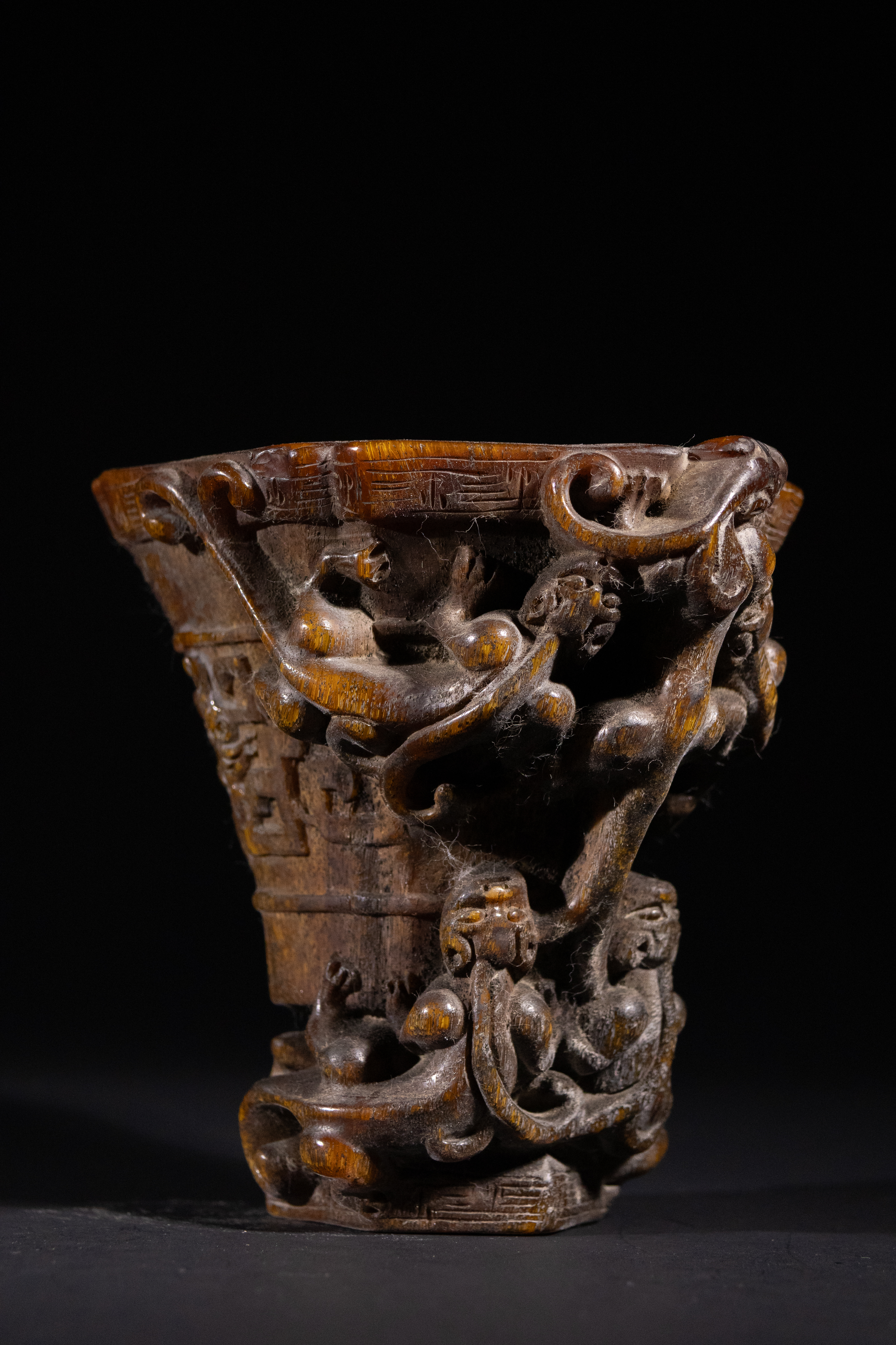 Lot 52: A Chinese Carved 'Chilong' Libation Cup, Possibly Qing Dynasty