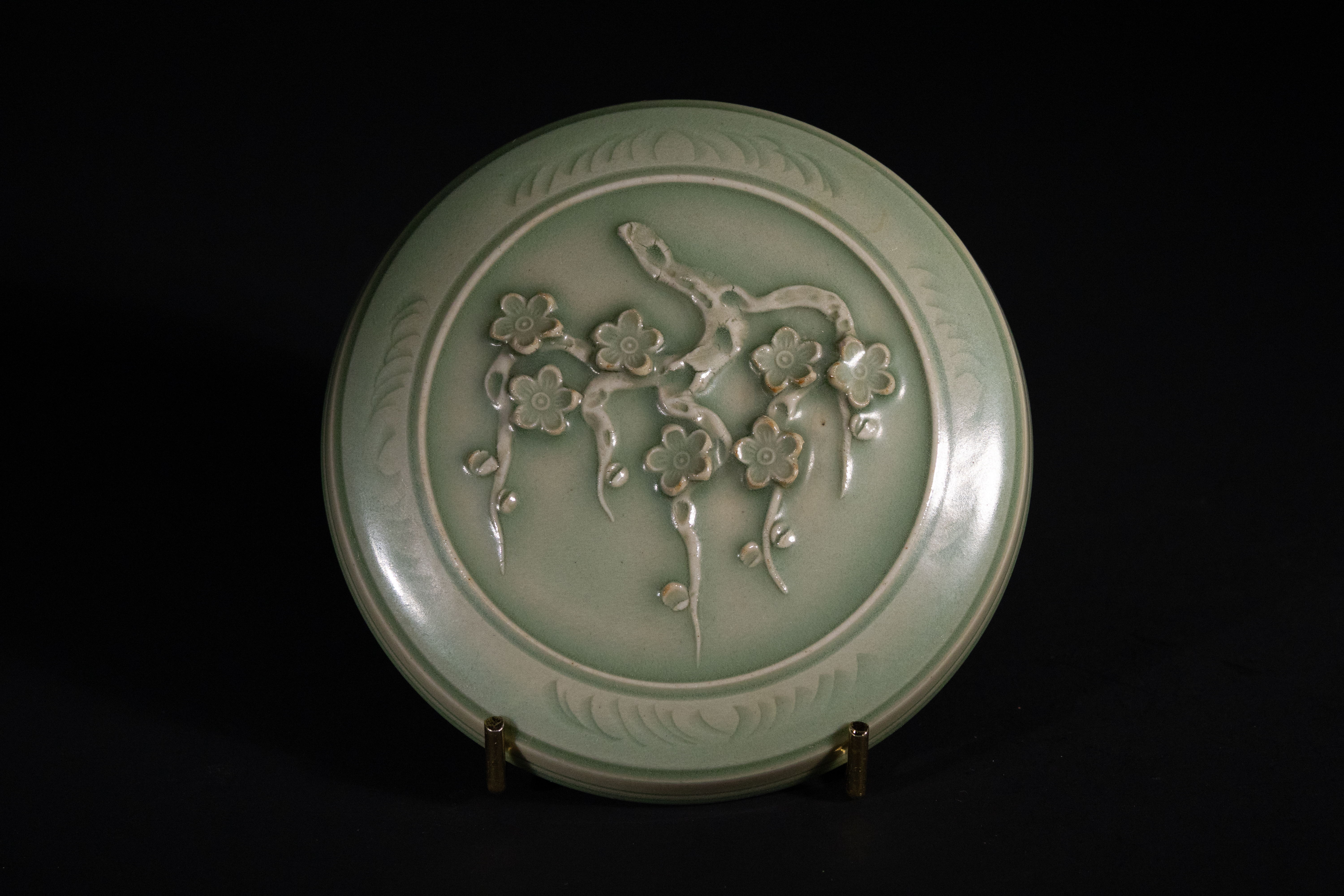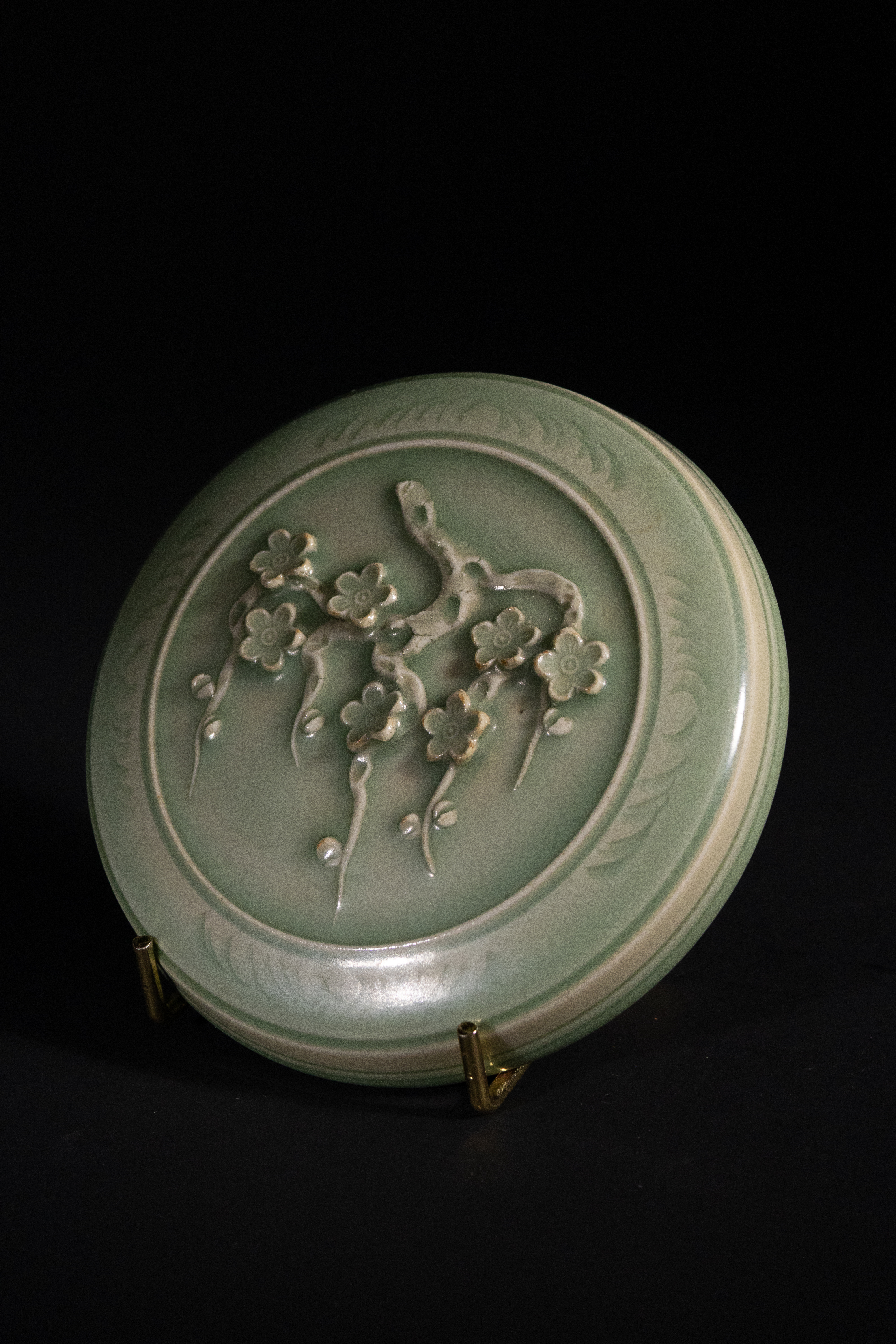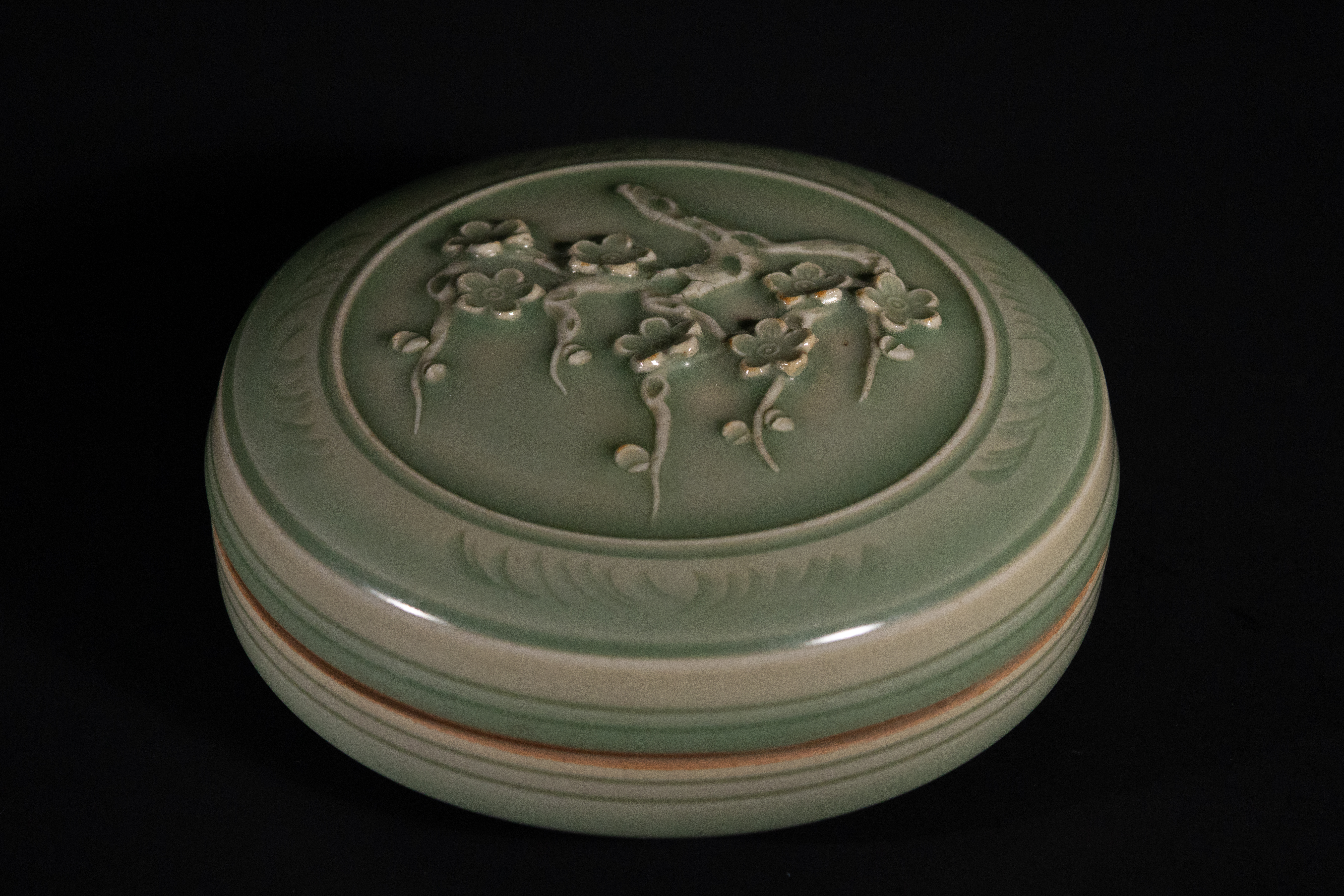 Lot 63: A Chinese Longquan Kiln Celadon-Glazed 'Plum Blossom' Box and Cover, Southern Song Dynasty