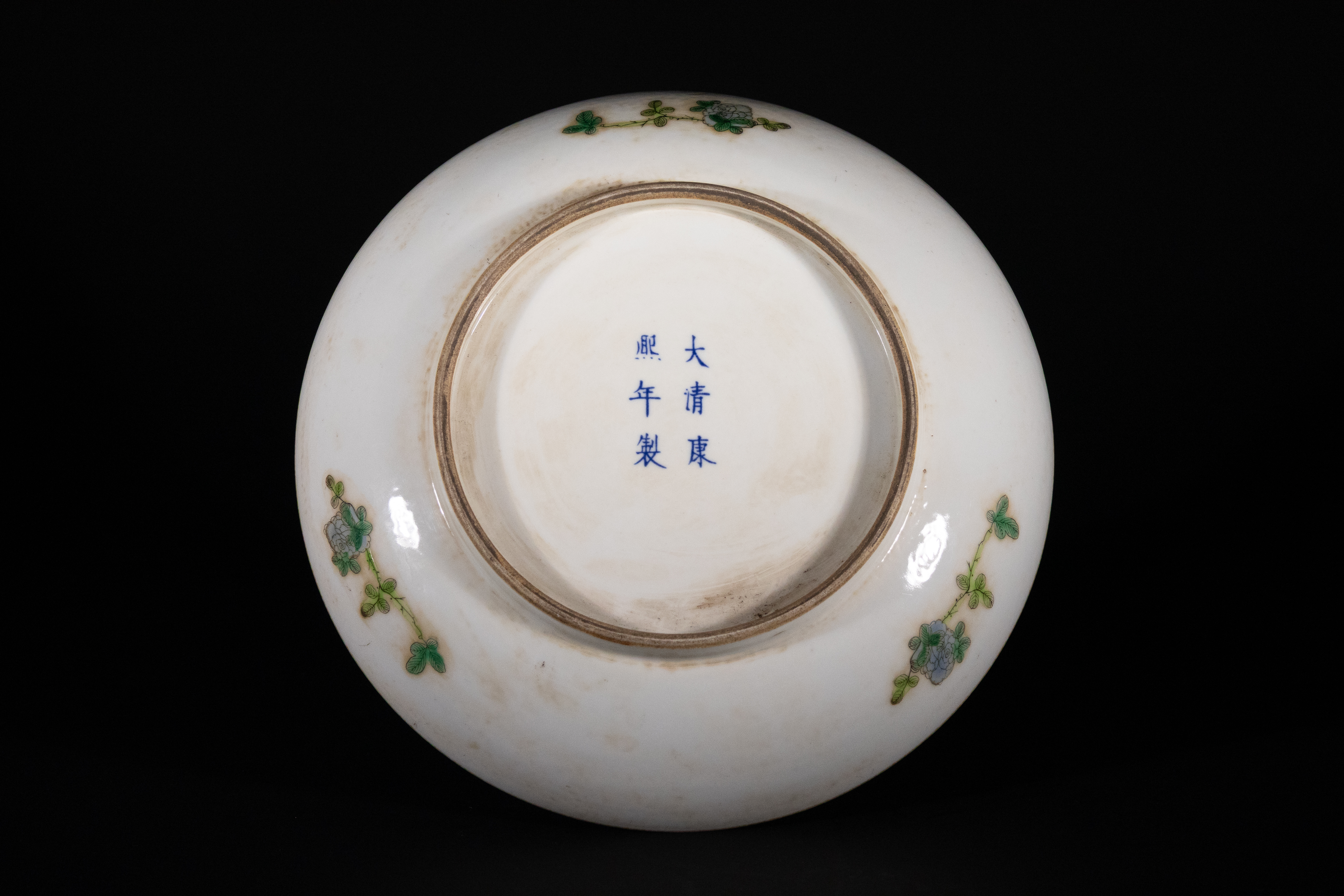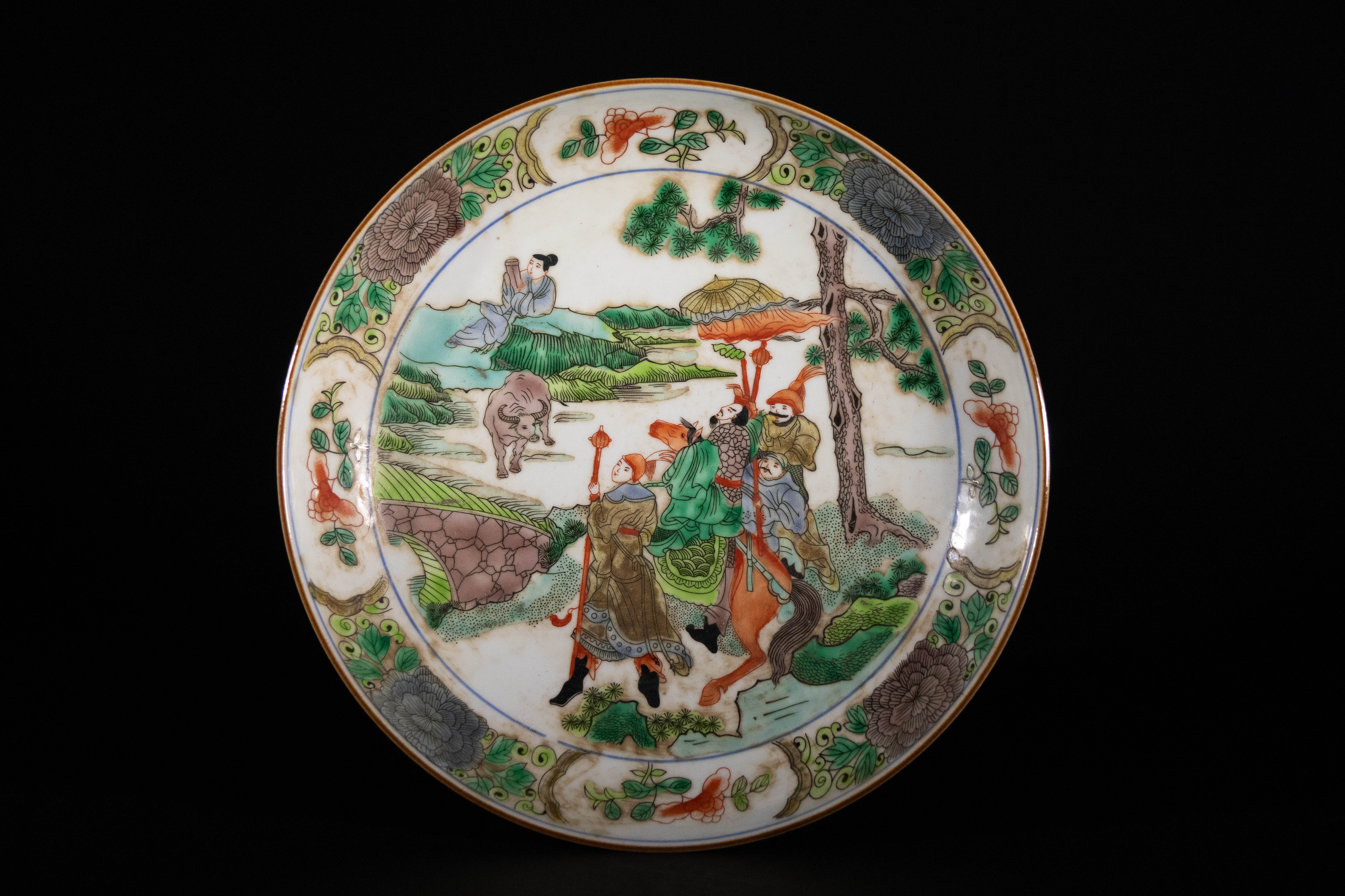 Lot 77: A Chinese Qing Kangxi Famille Verte Character Story Plate, Kangzhi Mark