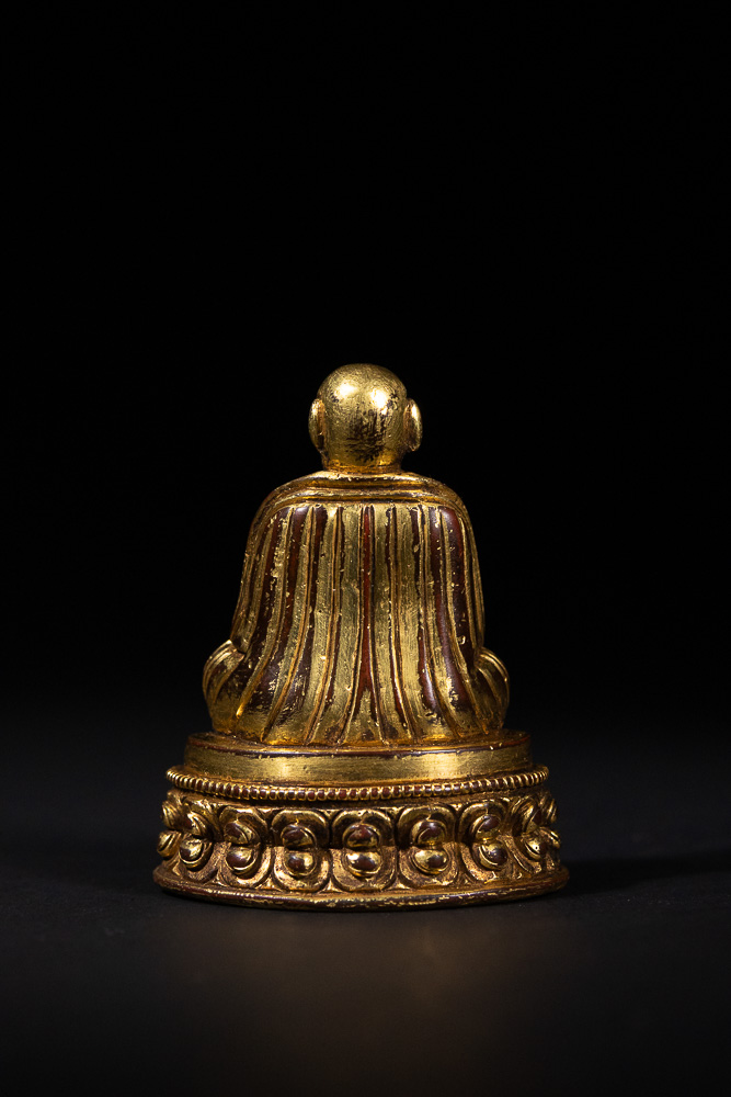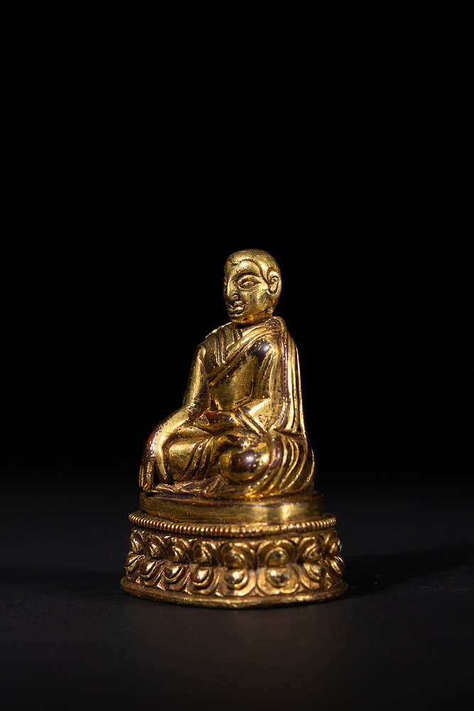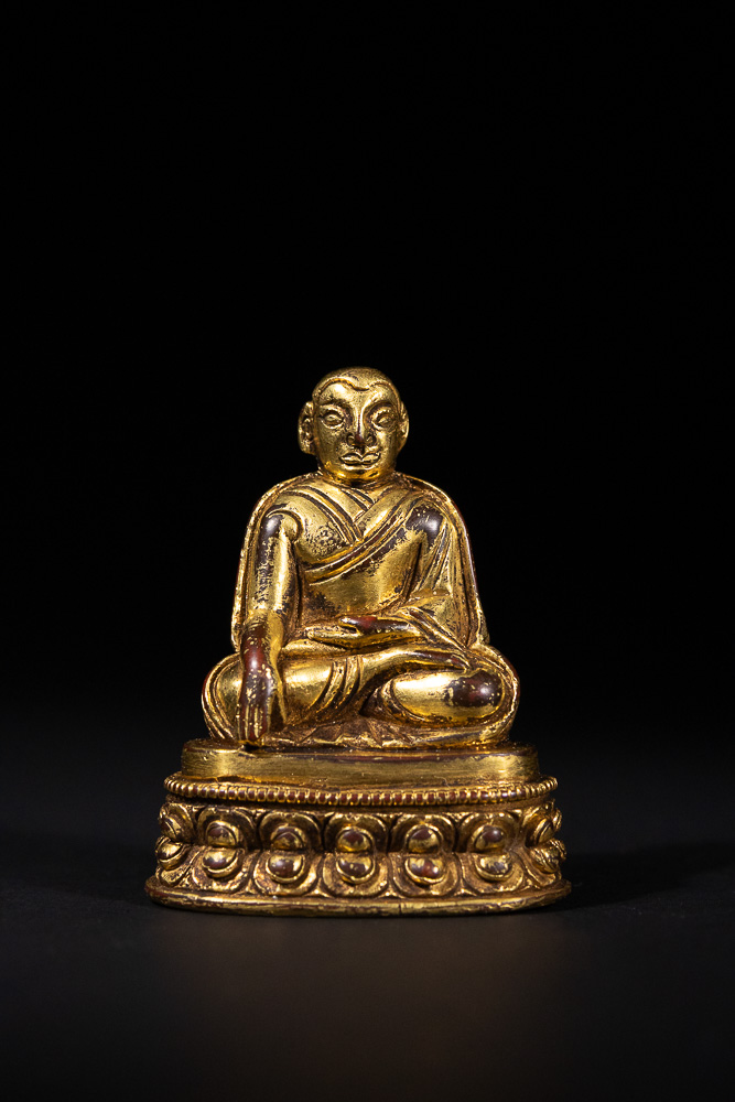 Lot 82: A Tibetan Gold Gilt Bronze Figure of a Lama or Arhat, 18th-19th Century
