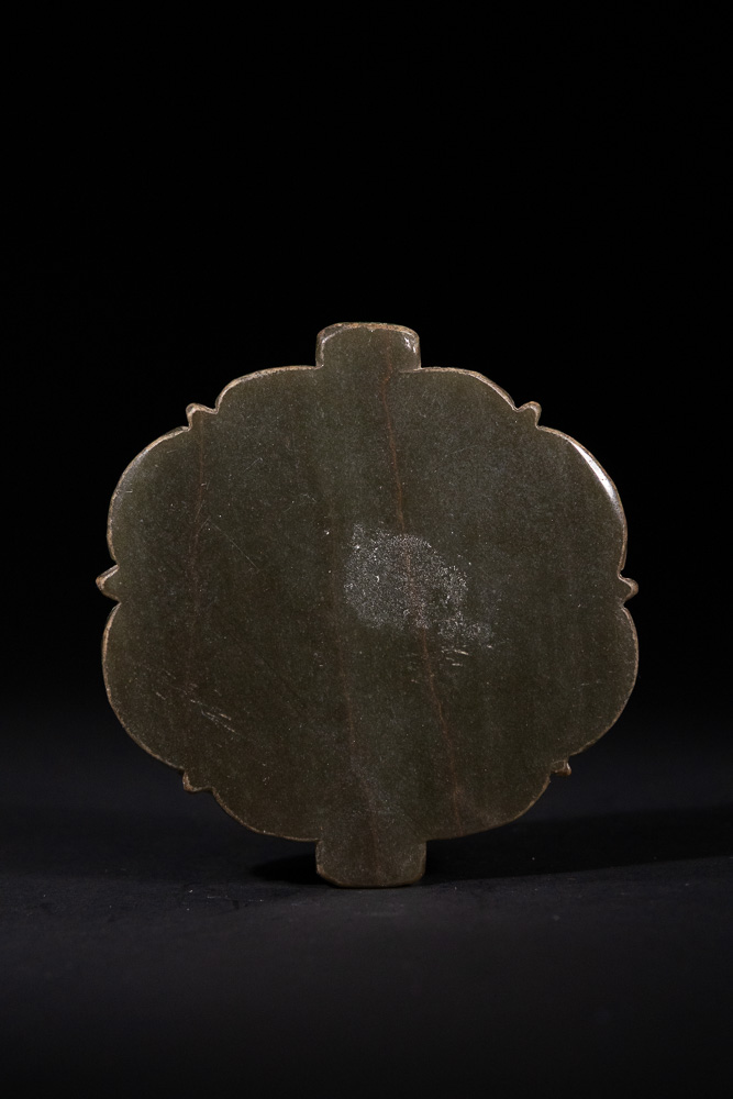 Lot 84: An Indian Glass-Set Jade Lobed Plaque